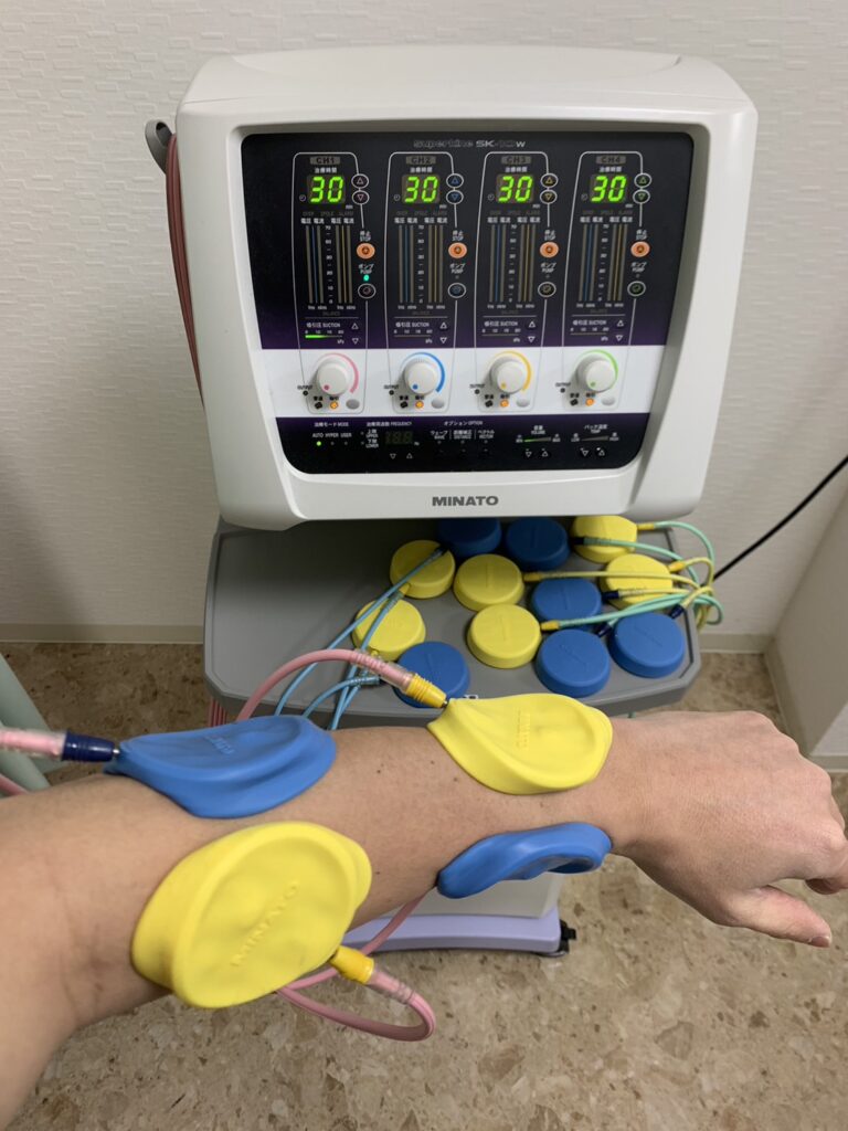 2種類の電流を身体内で干渉させ筋肉を揉みほぐす治療です。深部の筋肉まで反応し、血流をよくすることにより、痛みを緩和させる効果があります。